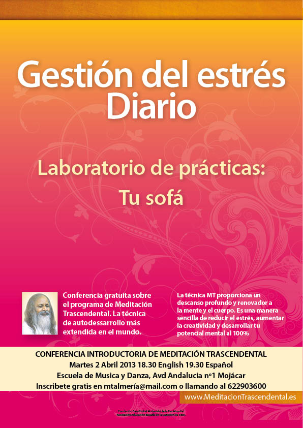 Curso de Meditación Trascendental 2 Abril en Mojácar sesión en inglés a las 18.30 y en español a las 19.30 horas.